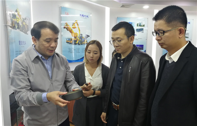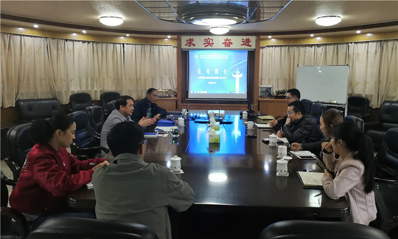 图为东方智能仪表公司董事长黄志刚与工作组交流