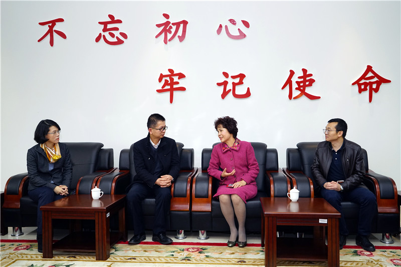 图为福贞金属包装董事长庄素贞(右一)介绍产品特点